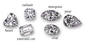 Cut refers not only to the shape of the diamond, but also to the proportions, symmetry, and finish. The brilliant round cut is the most popular, reflects the most light, and of course is the most expensive. In fact, round diamonds have their own pricing structure. Below are some of the other cuts available.